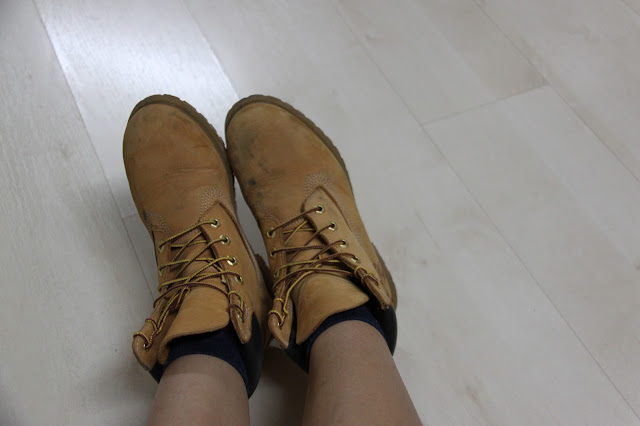 Decided to go for my tiger sleeves sweater from H&M and my ripped shorts from Cotton On for a relatively comfortable day! I'm worried that it's gonna be mega humid to day but, oh well. Throwing on my Timberland boots over some fruit-y socks! ^^