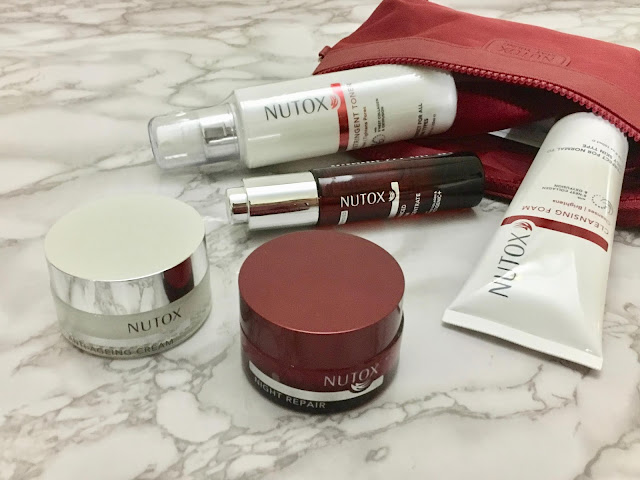 I promised an update in my night skin routine, and here it is! I've been sent a very generous box of Nutox skincare and of course, I had to give it a go! I may only be 25 now, but anti-aging skin care has to start young. I usually use a lot of brightening and gentle exfoliating products in both my day and night routines.
